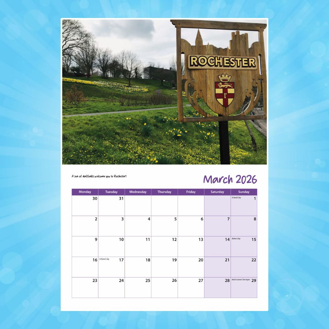 The Rochester 2026 Calendar showcases 12 stunning scenes of Rochester throughout the year in full colour, folding out to an impressive A3 size. Capture the essence of Rochester and enjoy a new view each month.